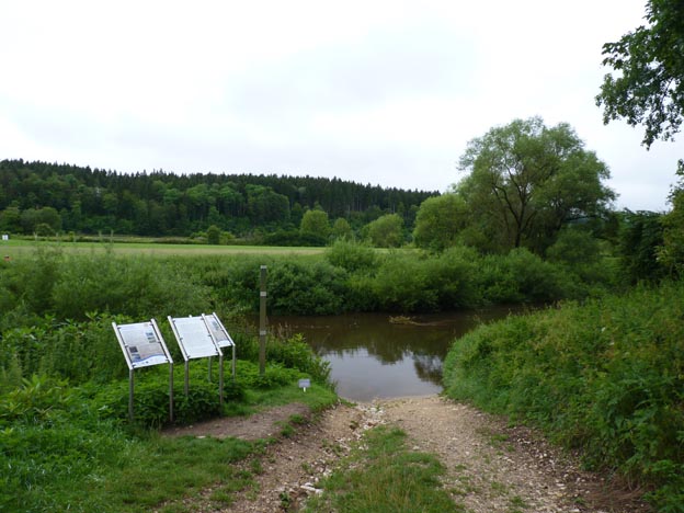 På sommaren tynar Donau bort här och flyter fram under jord. Då går det att gå över floden torrskodd. Vi kom lite för tidigt på säsongen för att få se det, men det var ändå en väldig skillnad mot när vi var vid Donau Durchbruch. Där såg vi Donaus djupaste punkt i Tyskland, här såg vi den grundaste. Det är bra med en detaljerad kartbok ibland.