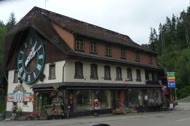 När vi åkte i Schwarzwald såg vi klockor överallt, av olika slag. Det fanns många små fina byar med fina hus. Vi såg skyltar mot Tysklands största vattenfall och världens största gökur. Det ville vi se, men eftersom klockan var mycket letade vi reda på en camping istället, så vi kunde övernatta först.