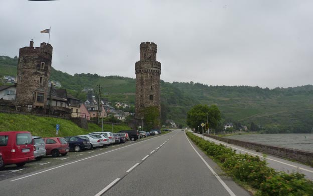 Vi fortsatte norrut på väg 9 längs med Rhen. Det fanns ställplatser och campingar i varierande storlek längs med hela vägen, så det verkar inte vara några problem att campa i den regionen. Vägen slingrade sig längs med floden och genom små byar. Det fanns mycket borgar att se på, både ruiner och renoverade. Hela vägen mellan Bingen och Koblenz var mycket vacker.