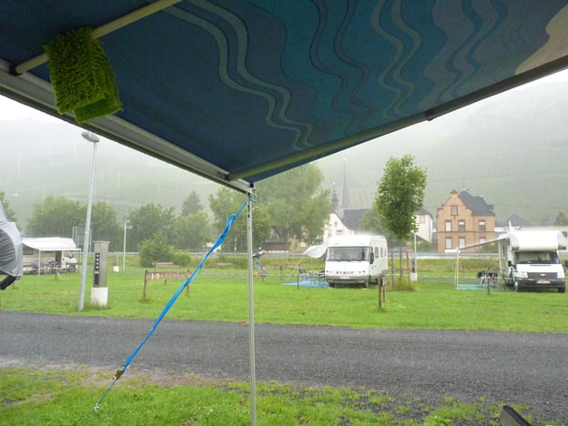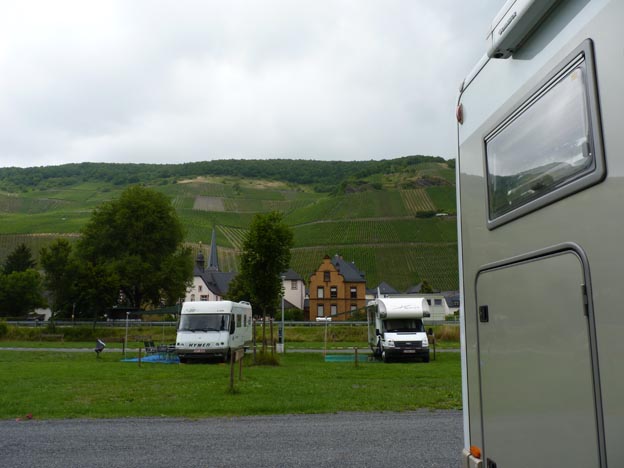 Det fanns inte så mycket att göra på ställplatsen, annat än att titta på båtarna som åkte på Mosel, titta på kullarna med vinodlingar, och att titta på regnet. Graach är ingen plats man åker till för aktiviteternas skull, här sover man bara, och sedan förflyttar man sig till fots (det är drygt 2 km till Bernkastel-Kues t ex), med cykel eller bil när man vill göra något annat än att sitta och se på floden och vinrankorna.