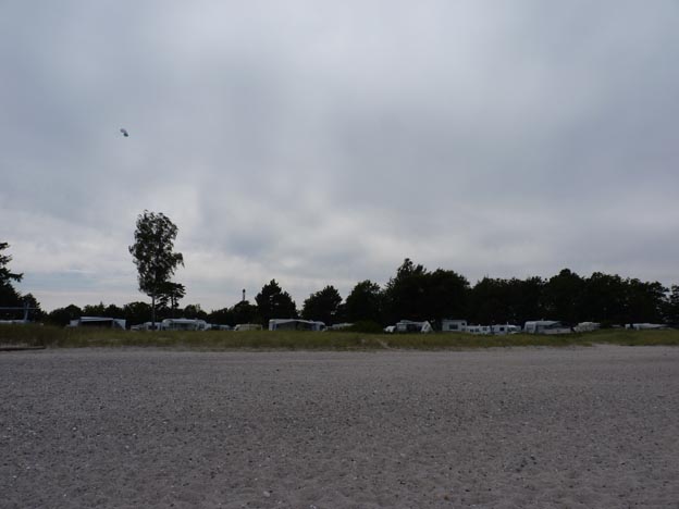 Precis bredvid campingen fanns en fin badstrand med sand, det var inte som vid badparadiset som vi hamnade vid i Tyskland, där det bara var lera. I Danmark hade de en riktig sandstrand. Badplatsen var övervakad med badvakter dagtid. Det fanns flaggor med olika färger som visade om det var ok att bada eller inte. Jag antar att det kunde vara ganska strömt, eftersom vattnet skulle ta sig igenom sundet.