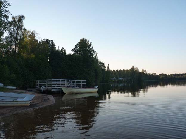 Enligt GPS:n är det 4,8 kilometer in till byn Hällefors från campingen. Det finns inte så mycket att göra där. Det går att hyra båt om man vill fiska i sjön, plocka bär och svamp eller promenera i skogen runt omkring, men i övrigt finns det inte så mycket annat att göra än att slappna av.