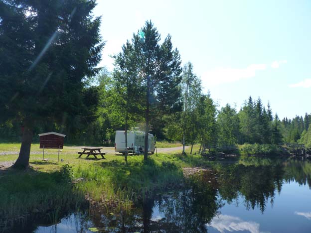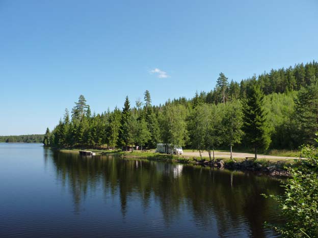 I slutet av grusvägen finns en vändplan, där det får plats ca 4-5 ekipage om man parkerar smart. När vi kom var vi själva där. Senare på eftermiddagen kom det en husbil till. Gissa om vi blev förvånade när det visade sig vara en kompis mamma som dök upp, tillsammans med sin karl. Världen är inte stor ibland.