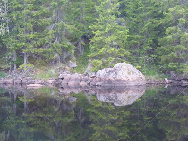 Hänglandstjärn är en stor sjö. Vi stod parkerade i ena änden av den. Där går det att fiska både i sjön och i en liten å.