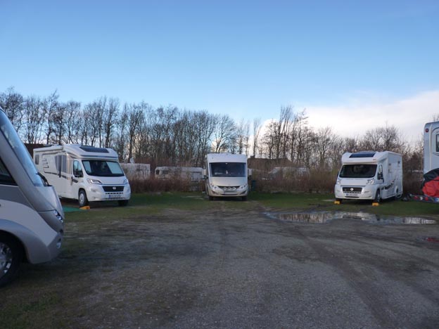 Enligt BordAtlas har campingen 50 platser, enligt platsöversikten vi fick har den 73. Tanten i receptionen pratade tysk-engelska. Hon var trevlig och gjorde så gott hon kunde för att vi skulle förstå varandra. Det blev en dyr camping för oss, 40,40 €, då var 19,80 € strömförbrukning. Vi glömde bort att vi skulle köra värmen på gasol igen, och ström är tydligen väldigt dyrt i Tyskland.