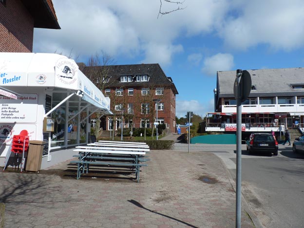 Vi började promenera mot byn. Ställplatsen låg i delen som kallades Dorf. Det fanns inte så mycket där. En turistinformation, några små butiker och ett par restauranger, i övrigt var det mest villor.