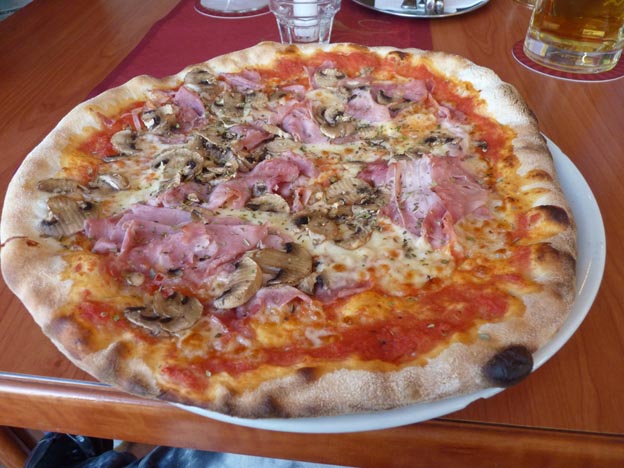 Inne på fiskrestaurangerna var det väldigt mycket folk, så vi valde en italiensk restaurang istället, Rialto Da Gigi. Bra service, goda och stora pizzor, och inte alltför dyrt: 24 € för två pizzor och dryck.