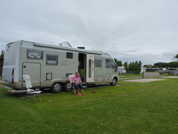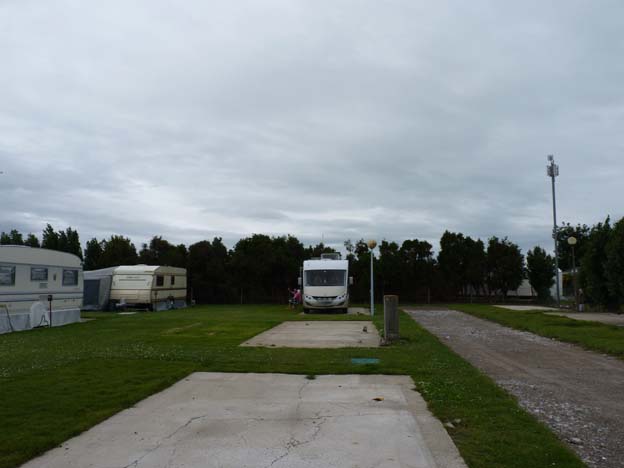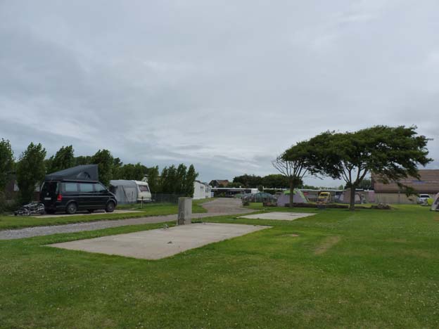 De få lediga platserna som fanns var stora. Campingen hade sex platser för resande campare med husbil eller husvagn. Man fick köra upp på en betongplatta, men man hade ändå gräs framför dörren.