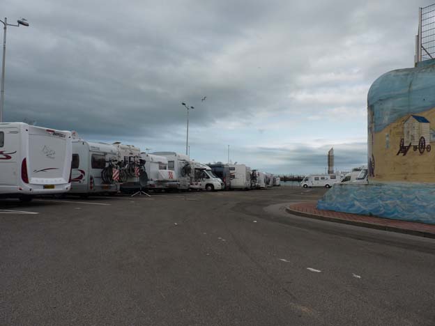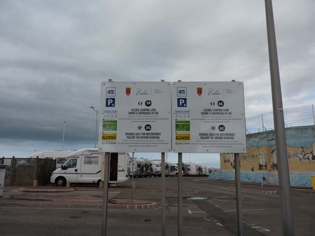 Själva ställplatsen i sig är kanske inte så fin, det är omgivningen man får njuta av här. Och känslan av att ha kommit till Frankrike och fått se Engelska Kanalen. Ställplatsen är som en vanlig parkering. Rutorna är långa, våran 9-metersbil fick plats utan problem, däremot kunde vi inte öppna de stora luckorna på sidan när vi fick grannar.