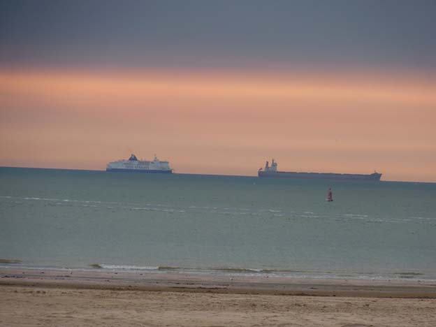 Här kommer solen fram. Här kommer också båten till Dover. Det kom båtar väldigt ofta, och vi hörde dem hela tiden. Det lät som i en hamn, med andra ord. Till slut vande vi oss vid ljudet, och på natten sov vi utan att bli störda.