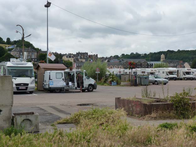 Vi tog sikte på staden Honfleur, mest för att jag gillade namnet på den, tror jag. Det skulle finnas en stor ställplats där, enligt BordAtlas, och det stämde.