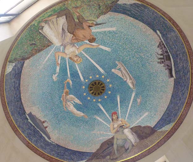 De två bilderna ovanför är tagna i det lilla kapellet, som finns mitt bland alla kors. Taket hade en stor målning.
