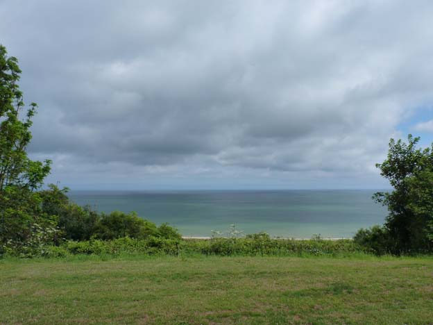 Från kyrkogården såg man ner över Omaha Beach. Det gick en gångväg ner dit, men Lelles onda knä satte stopp för den vandringen, så vi gick aldrig ner dit.