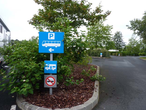 Ställplatsen är lätt att hitta. Om man inte ser bilarna från vägen när man kör genom byn, kanske man ser den här stora skylten.