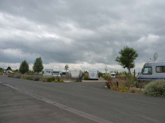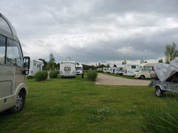 Ställplatsen var stor. 110 platser, enligt BordAtlas. Man kunde välja underlag, det fanns både gräs, grus och asfalt.