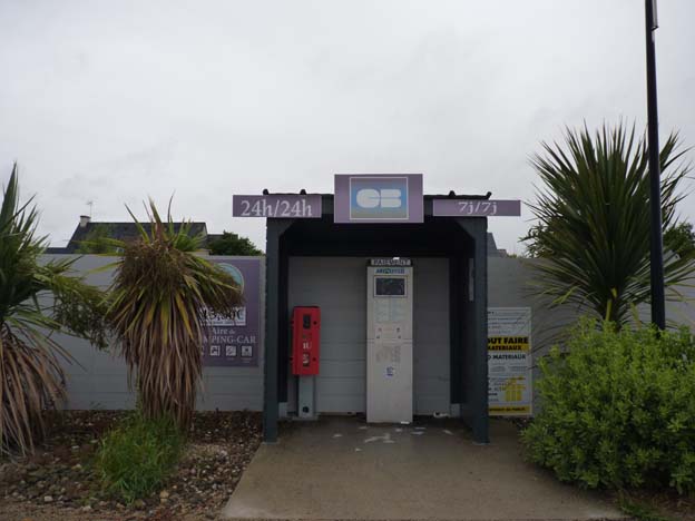 Man betalade med kort i en sådan här automat. 15 € för 24 timmar. Då ingick el, vatten, wifi (som det inte fanns täckning på), toa- och spillvattentömning. Man fick en kod som användes till allt, även bommarna när man skulle köra in och ut.
