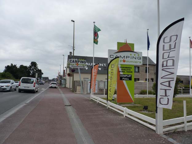 Vi fortsatte västerut på väg 514. Mellan Port-en-Bessin och Vierville-sur-Mer fanns det skyltar till kyrkogården, så det var inte svårt att hitta dit. Det fanns även skyltar mot bland annat den engelska och den tyska kyrkogården.