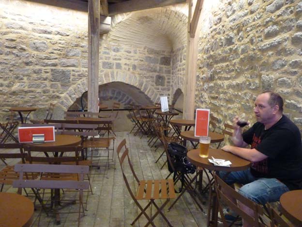 Vi såg att vi hade gott om tid på oss innan nästa buss skulle gå tillbaka till ställplatsen, så vi trotsade turistpriserna och beställde varsin öl. 18 €, kostade det.