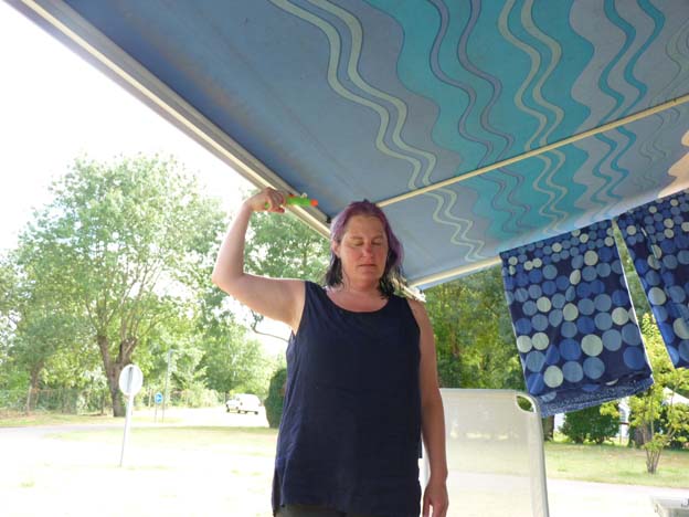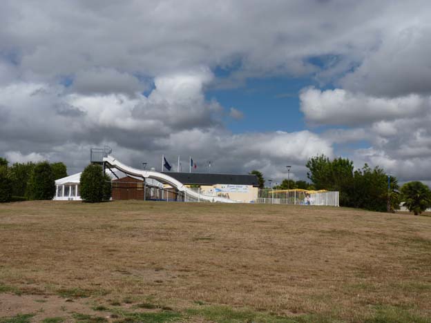 Campingen heter I´lle Meuchet. Ingen av de tre personerna i receptionen pratade engelska, men vi hade tur den här gången också. En av gästerna på campingen var där för att prata om något precis när vi kom, och hon kunde översätta lite åt oss. Hon kunde inte så bra engelska hon heller, men hon var ändå villig att försöka. Det betyder så mycket. Hon berättade för tjejerna i receptionen att det var våran husbil som stod utanför, att vi behövde plats för den, att den var stor, att vi kom från Sverige osv. Det var hon lite nyfiken på.