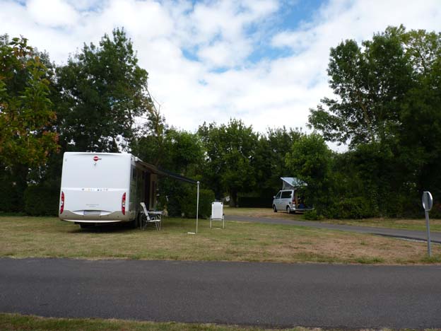 Jag hittade en liten väg i kartboken, väg D751. Den var gropig, smal och i dåligt skick, men vad gör det när man åker precis längs med floden? Jag njöt av vyerna varenda sekund. Lelle fick koncentrera sig på bilkörningen. Vi hade åkt ganska långt den dagen, eftersom vi åkte förbi deltat och flodmynningen, så när vi hittade en campingskylt efter byn La Varenne svängde vi in där. Det fanns ju flera dagar som vi kunde utforska Loire på.