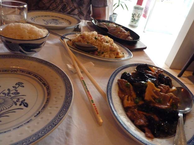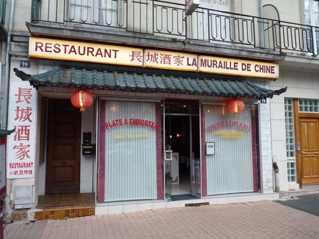 På andra sidan bron, i de nyare delarna av Saumur, och precis där vi skulle svänga och gå längs floden tillbaka till campingen, hittade vi den här kinarestaurangen. Utifrån såg den inte så inbjudande ut, men vi var hungriga och gick in. Jäklar, vilken mat, rent ut sagt. Det var nog den godaste kinamat jag har ätit. Kanonbra! Som tur var stod det på både franska och engelska i menyn, för ingen där pratade engelska. Vi pekade på det vi ville ha. Bestick fanns inte, man fick bara pinnar och en sked att ösa mat med. Vi tittade på de andra som var där, och det var ingen annan som hade bestick heller, så det berodde nog inte på någon språkmiss. Det skulle visst vara så. Jag klarade inte av ätpinnarna, så jag åt med skeden i smyg.