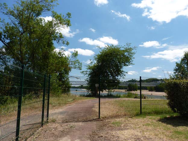 Här tog campingen slut. Stora staket och ingen möjlighet att komma ut till floden. För att komma dit var man tvungen att gå till receptionen i andra änden av campingen, och sedan gå runt alltihop.