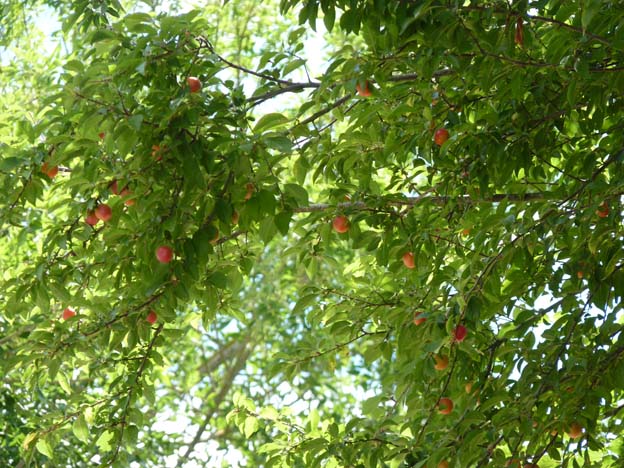 Vi hamnade precis under ett plommonträd. Det var perfekt att sitta i skuggan under det.
