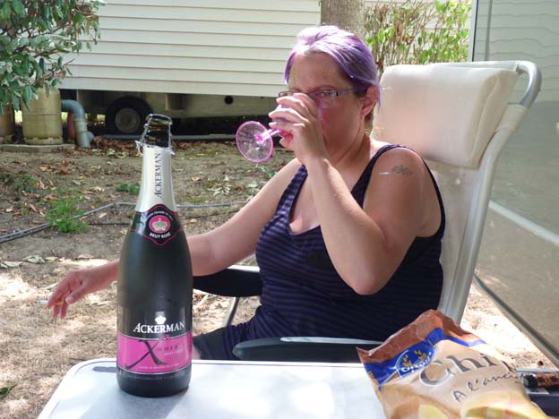 Vi hade 38° grader varmt i skuggan, och 51,2° på taket, så vi satt och flämtade utanför bilen tills det började bli åtminstone lite svalare, innan vi gick och upptäckte byn. Även om husbilen inte blir lika varm som en personbil, kändes det inte ok att lämna katten där själv i värmen mitt på dagen.