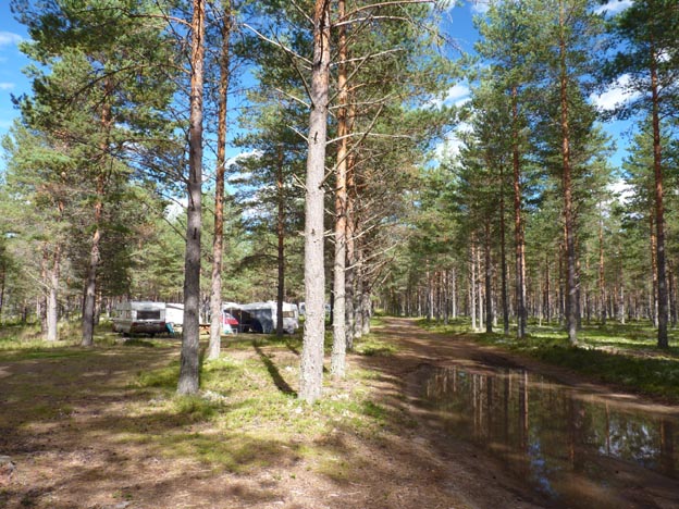 För att få campa här måste minst en person / ekipage lösa fiskekort. Betalar gör man med kontanter i en låda vid infarten.