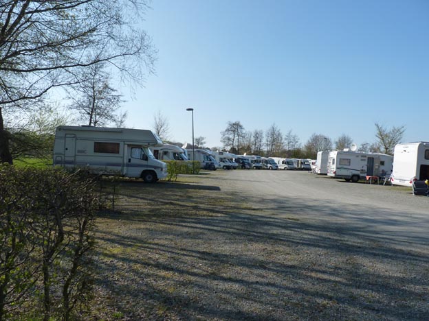 Det här är en stor ställplats. Det ska finnas 72 platser i varierande storlek. Vår stora bil fick plats på de flesta platserna.