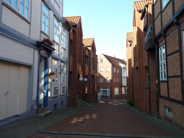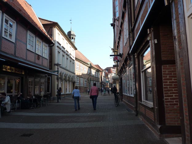 Det fanns många fina och gamla hus i Stade. Det var trånga gränder och kullersten. Fastän det var söndag var några småaffärer och restauranger öppna.