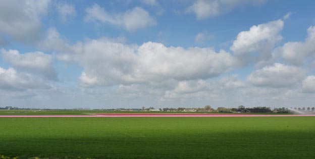 Vi såg inte så många tulpanodlingar längs vägen. Det har varit mer förr. Jag vet inte om vi kom lite för tidigt, för vi såg flera odlingar där tulpanerna inte hade slagit ut helt ännu.