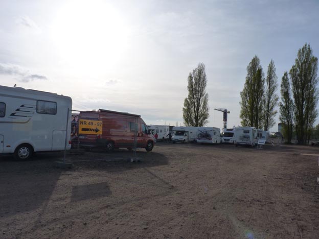 Det var en stor ställplats, 96 platser enligt Bord Atlas, 97 enligt skylten. Trots att vi kom så tidigt var det nästan fullt.