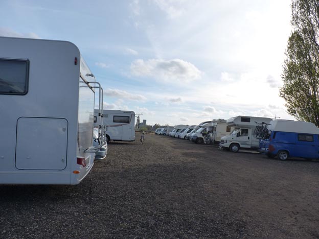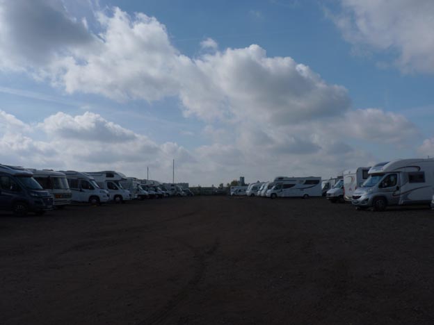 Det här är ingen trevlig och mysig ställplats, det är en stor inhägnad grusparkering. Den är perfekt att stå på om man vill besöka Amsterdam, men det är ingen plats som man fäller ut markiser och plockar fram solstolar på.