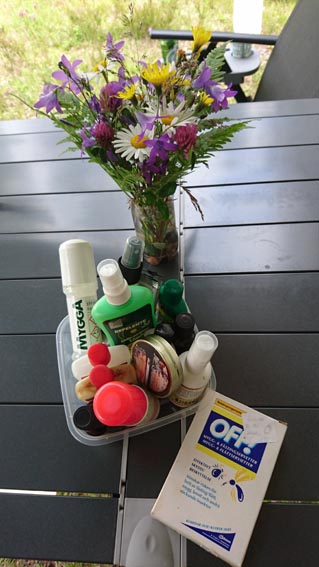 Midsommar. Förberedelser är A och O. Blombukett och diverse medel och kemikalier mot mygg och knott. Om inte det hjälper plockar man svamp som växer på björkar, tickor kallar vi dem. Man tar en tom burk, lägger i tickorna i bitar, häller på lite tändvätska och försöker få dem att ryka så mycket som möjligt. Lukten håller både knott, mygg och folk borta.