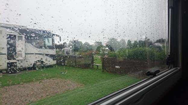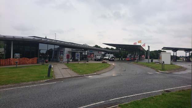 Vi vaknade med regn. Eftersom vi var så nära Tuelsø och den stora rastplatsen där, struntade vi i att äta frukost och åkte dit och köpte smørrebrød istället.