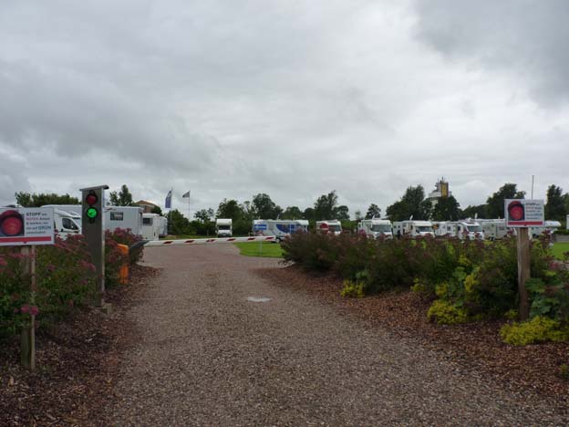 På platsen fanns en servicestation där man fixade allt. Man använde det kortet som man fick när man checkade in. Det fanns toatömning, spillvattentömning, färskvatten, dusch, tvättmaskin osv. Man betalade bara för det som man använde. När man checkade ut stoppade man in kortet i en automat, som läste av vad man hade gjort. Man betalade, och fick ett annat kort som användes för att öppna bommen på utfarten med.
