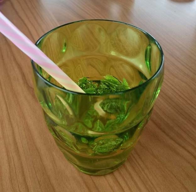 På gräsmattan fanns det örter av olika slag som alla på ställplatsen fick plocka. Vi plockade mynta och gjorde mojito. Det blev riktigt trevligt på kvällen när solen kom tillbaka.