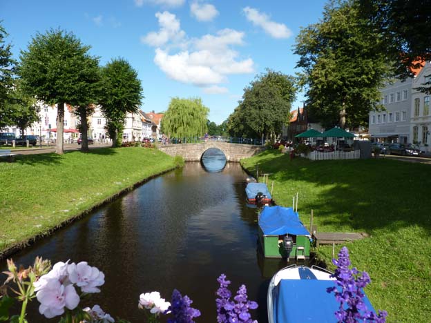 Vi började dagen med en upptäcktsfärd i Friedrichstadt. Det var inte alls långt att gå, och lätt att hitta. Det tog ca 10 minuter till centrum från ställplatsen. Det var en mycket mysig liten stad. Staden kallas för Tysklands Venedig, och det kan jag förstå. Det var små kanaler och broar överallt.