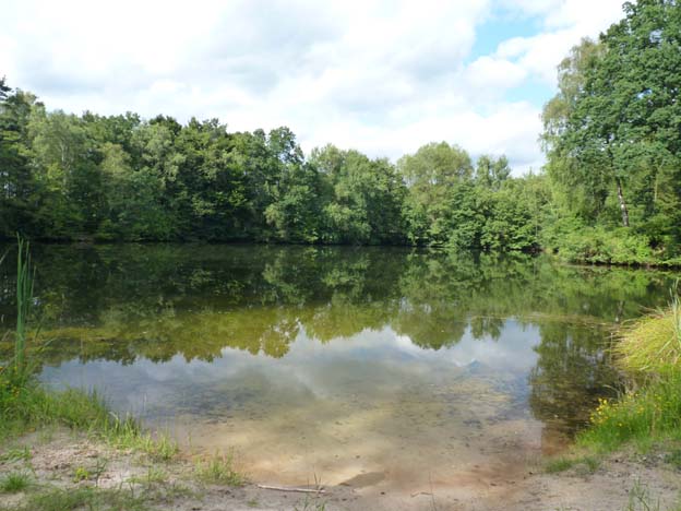 Vi gick mellan några åkrar och genom en liten skog, fram till sjön. Det tog inte mer än fem minuter.