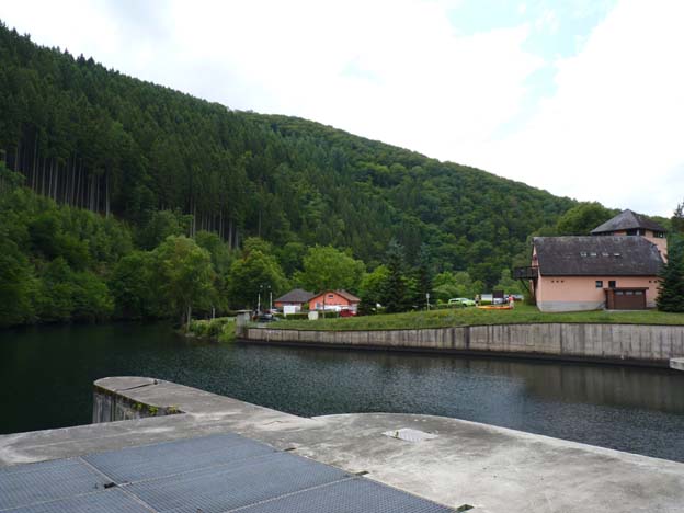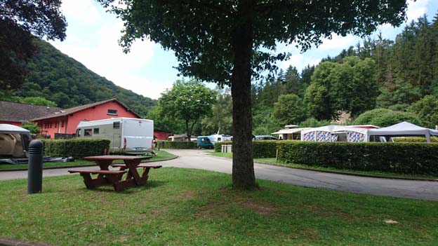Campingen som vi valde heter Im Aal, och ligger nära Esch-Sur-Sûre, i nordvästra Luxemburg. Det visade sig att det inte fanns så mycket att göra där. Det finns en by i närheten, men med våra små minicyklar ville vi inte cykla flera kilometer på en smal, kurvig och brant väg, så vi stannade på campingen. Dessutom kom vi fram ganska sent på eftermiddagen, eftersom vi hade varit på vinfestivalen i Mosel kvällen innan.