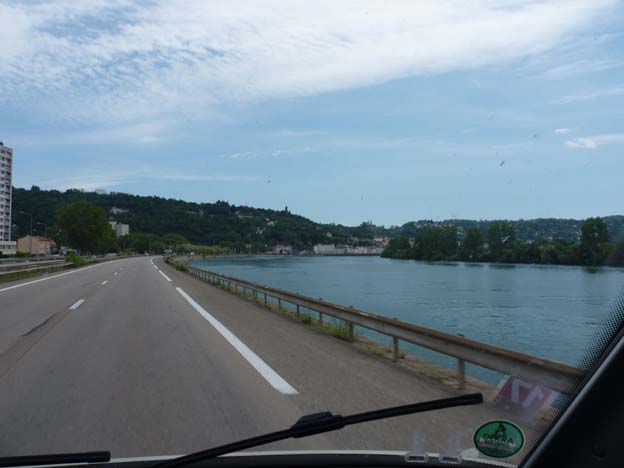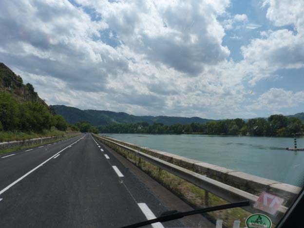 Bilåkardag igen, för att ta oss närmare vårt mål i Provence. Vi åkte på gratisvägar söderut, förbi Bourg-en-Bresse, Vienne och mot Valence. Vi åkte genom den franska landsbygden på småvägar, genom små trånga byar och en bit längs med floden Rhône. Det var riktigt vackert. Vägarna var hyfsat bra och solen sken. Om man åker i Frankrike, och vill se något annat än motorväg, rekommenderar jag att välja de mindre vägarna. Det tar lite tid, men det är det värt.