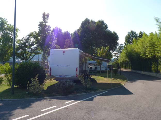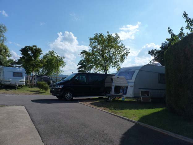 Nu är det ju så att Lelle har blivit väldigt duktig på att backa. Vi har ju haft bilen i några år. Vi körde in på platsen, backade lite snett, körde fram lite snett, backade lite snett och så vidare. Efter ett antal omtag stod vi perfekt. Campingvärden kom och tittade på, och blev väldigt imponerad. Han bad om ursäkt för att den enda platsen han hade att erbjuda var så liten, och undrade om vi var nöjda. Vi var mycket nöjda. Hej Sverige, sa han när han gick förbi oss för tionde gången säkert. Och så skrattade han och hälsade på katten. Mycket trevligt!