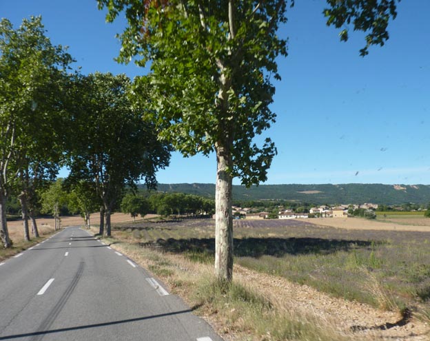 Vi ville söderut mot kusten och västerut. För att ta oss dit fick vi åka på småvägar, och vi passerade flera små fina byar med trånga gator. Det gick bra i alla fall. Vi åkte igenom stora odlingar med lavendel, så bilen luktade både brandrök och lavendel i flera dagar efteråt.