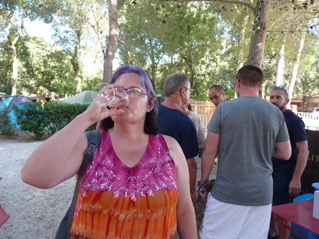 På kvällen var det en liten marknad på campingen. Det gick att köpa färsk frukt, och en vinproducent från en gård i närheten hade vinprovning och försäljning. Till och med jag som inte dricker vin smakade.