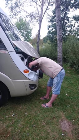 Lelle passade på att fixa med extraljusen på bilen, de hade skakat loss lite. Han bytte en trasig glödlampa också. Det här blev en underhållsdag, kan man säga.