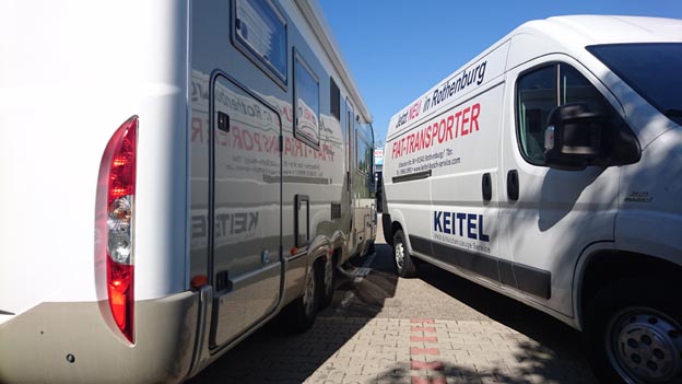 Verkstaden vi kom till var en auktoriserad Fiatverkstad som var specialiserad på större bilar. Killarna där kom ut och hälsade, och vi konstaterade att jag pratade bättre tyska än vad de pratade engelska, däremot kan jag inga tyska ord om bildelar. Jag vet knappt vad orden betyder på svenska.
