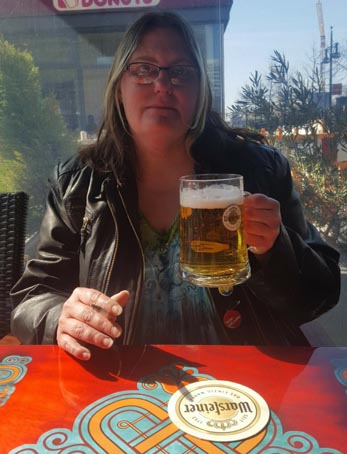 När vi hade sett Checkpoint Charlie hittade vi en tunnelbana som tog oss till Alexanderplatz. Där hittade vi ett trevligt ställe som serverade öl. Vi behövde en vätskepaus efter allt gående till Checkpoint Charlie och i tunnelbanan, så det passade bra.