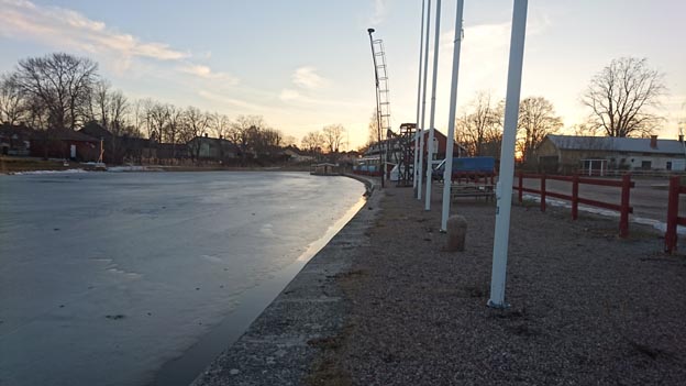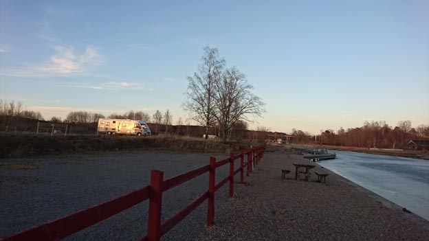 Man står väldigt fint precis vid kanalen. Platserna är plana och har hårt grus. Perfekt om man inte vill riskera att köra fast tidigt på våren.