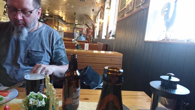Vi var och åt i restaurangen precis bredvid. Den ägs också av Kapten Bille. Det var väldigt bra mat och väldigt bra service. Det här är ett ställe som vi kommer att besöka fler gånger.